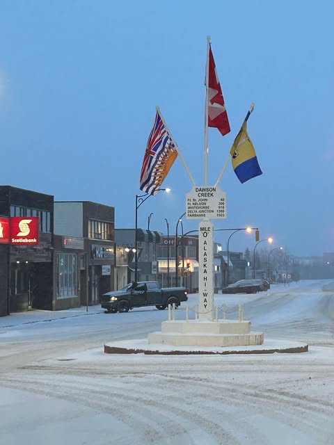 Birthday Greetings to our son in law Grant – Our daughter Helen and Grant are visiting Ft St John this week – where Grant grew up – this is a pic they sent of the Signpost at Dawson Creek – a spot I drove by many times in my travels – The local Yamaha dealer called “Walt’s House of Wheels” was just up the road on the right side. – This is the official start of the Alaska Hiway.