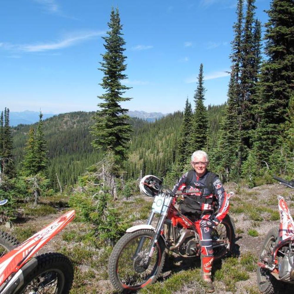 We have often posted stories on our love for the High -Alpine – here is a shot of myself up at around 7,000 ft above Trout Lake BC. – I am sitting on a Beta 200, one of my favorite bikes. ( It ran perfectly up at the high altitude with no need for any carb adjustments) It looks like I have one of the Hebo number plate extra fuel tanks fitted and also one of our neat Outlaw BackPaks witch would hold an extra 3 Gas bottles. ( We gave that to Team Canada for use at the last TDN by Steve Day) – Sadly we no longer make any of the Outlaw toolbelts or other bags.