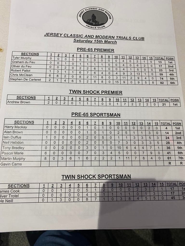 Harry wins in Jersey – first time out on his new (old) Fantic. – Well done laddie!! – Thanks to Wendy for sending these results. and pic.