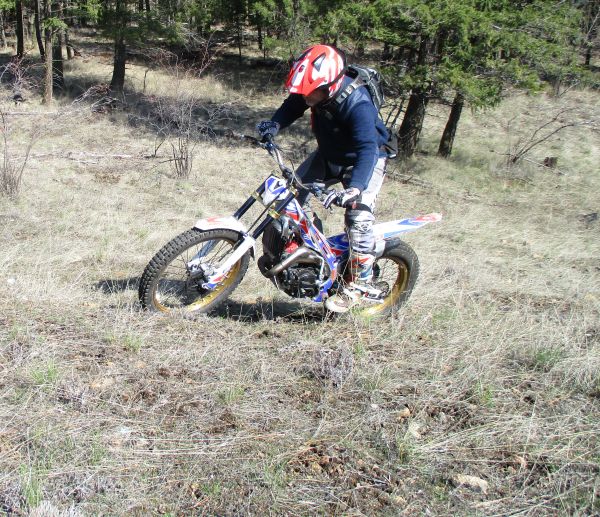 I had Mike practicing the “Basics” with correct body positioning on turns and cambers – the camera doesn’t show how steep this side-hill is.