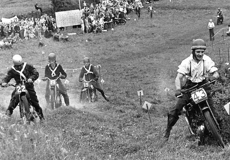 This was “Scrambling” back in the day – lots of mud and crap tires. ( I think they all get a “Three” for this. — Of course after the war all the competition bikes were just converted street models.