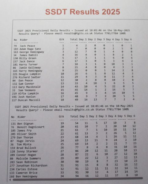 And last but not least Kudus to the other Cannucks who gave it a good go this year, and to Nigel Birkett who finished 157th with 348 pts in this his 52nd ride in Scotland!!!!!!