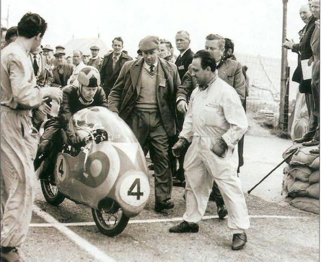 The month of June in the Isle of Man means only one thing – the TT races. – we were there in 1957 when Sammy Miller was leading the lightweight race going into the last corner (Governor’s Bridge) when his Mondial seized!! – Sammy pushed the bike down the long finishing straight to the checkered flag to claim 4th position we have not seen this pic before which shows him exhausted and dejected at the finish – It was not long after this that he gave up road racing to concentrate on Trials riding – the rest is history.