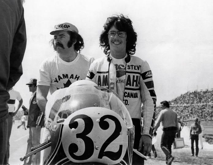 Just saw this great shot of Bob Work and Stevie Baker at Daytona 1975 – I was there that year and of course knew both Bo and Stevie very well from working at Yamaha Canada.
