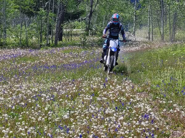 Our buddy and driver Mike had a couple of friends from Alberta visiting this past week, so he took them on some really neat rides on their Enduro bikes – this pic was taken up above Cache Creek – check out all the flowers.