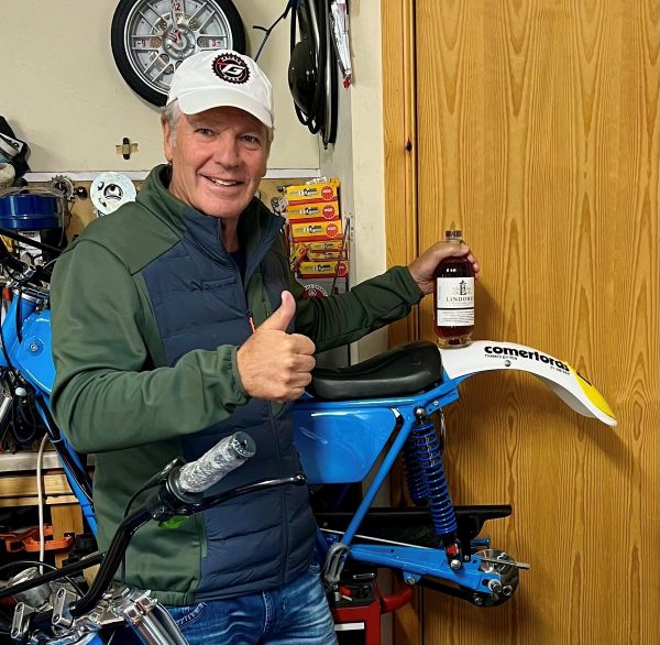Another big Twin Shock Trial in Scotland this weekend -“THE HIGHLAND CLASSIC” Hosted by John Moffat with special guest Bernie Schreiber – Here is a pic of Bernie with a special bottle of Whisky made for Comerford’s the well known Trials Dealer from the 70’s who sponsored Bernie on the Bultaco. ( Looks like he also has the standard supply of sparkplugs we all carried back then)