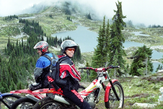 This is an old pic from when we were selling Sherco’s and was in the area near Kelowna where the big Fire had been, the rocks were all bleached white, and we also saw hundreds of field mice that day on the trail. But the main reason we are posting this today, is because back then we were selling the really nice lightweight carbon fiber NZI helmets which we Imported from Sammy Miller. – Now if you flick back to the pics we posted yesterday, you will notice that I’m wearing my very old version of this great helmet, because I thought it would help with my neck issues ( and it did) – Just wish we could still buy these.