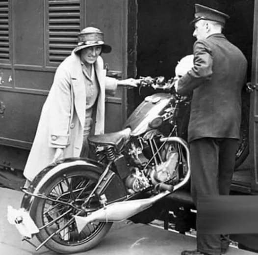 While it’s nice to see more gals riding Trials these days – perhaps it was really women like Marjory Cottle who amazed back in the day by beating a lot of the men especially in ISDT events – here she is loading her bike on the train to travel to one of them. ( no big fancy transporters back then)