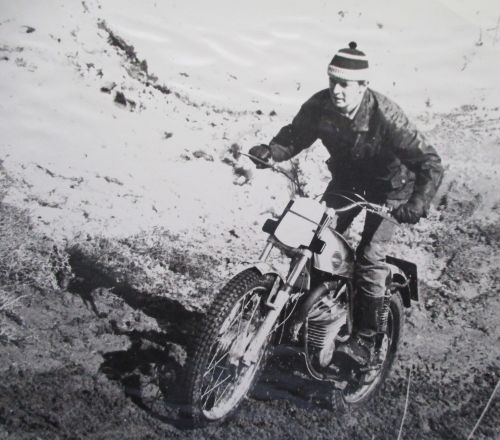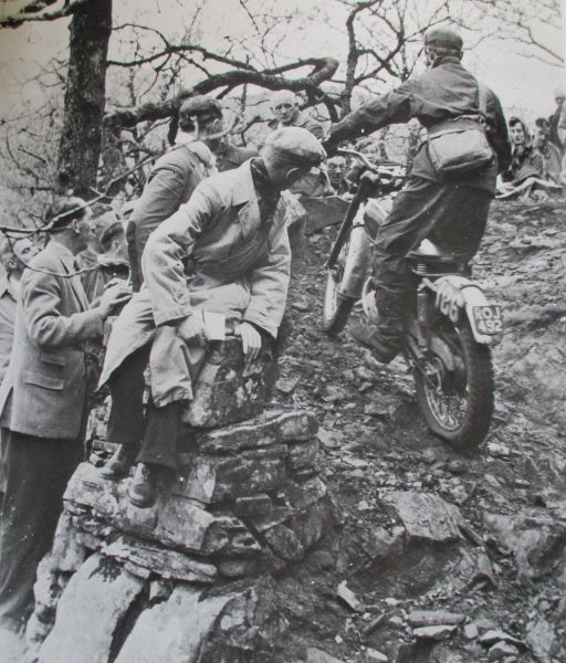 Below is a pic of myself taken in my first Trial, on a James 197 – many have seen this Engraved photo on the Outlaw Trophy – Quite a few of the factory riders would come to the local events, and back then everybody rode the same line – in other words you jumped in the “deep end”