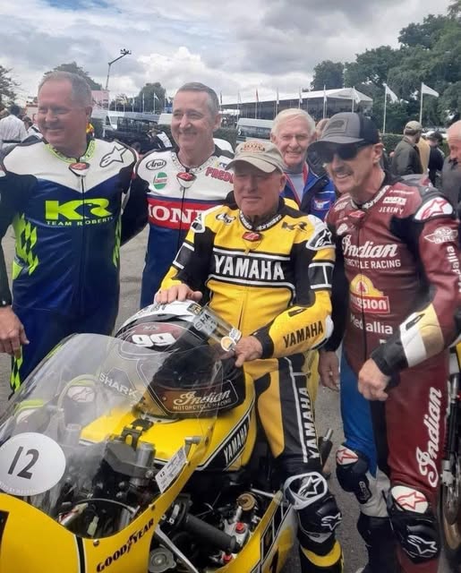 I saw this pic which made me laugh – taken at the Goodwood Festival of Speed showing some well known Yanks – and then yes then there is Sammy at the back – more famous than any of them, and still promoting motorcycling. – he likely got a chuckle out of that.
