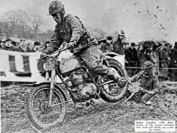 Roger Boothroyd sent me this pic of the days when “Scrambling” in the UK often was held on very muddy tracks in the winter months. Arthur Lampkin and Jeff Smith are good friends and both still alive.