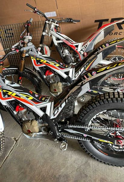 Here is a spy shot of some nice TRS bikes at Steve Saunders Shop in the UK – with two Gold models up front – Heath tells us that the new injected model works brilliant, easy to start and super smooth – best on the market he says!! – AND we have just heard that we have one available to us next month!!! If you want this one better shout up quick!!!!