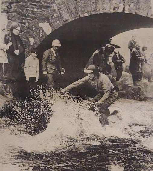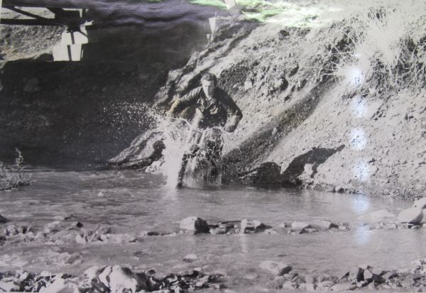 Another water splash section – not so deep, but coming after a steep drop and on my Ex Terry Porter- Bultaco at our 1971 first Long distance Trial in Alberta – this was the last section (#30) by which time the Spanish brakes were useless and yes the rocks were slippery.