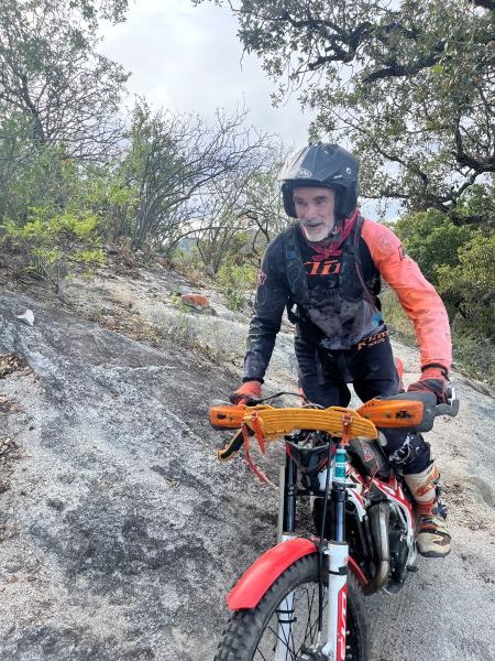 Stan sent us this pic of Kiwi Trent Burgess on his Beta Evo complete with long ride kit and chainsaw – they were out on a 6 hour ride somewhere – We took Trent out a few years ago when he first got a Trials bike – we had to slow him down that day as he was hitting stuff at high speed – likely because he was also competing in the Baja 1000 races as well at that time. – Hopefully get more pics soon.